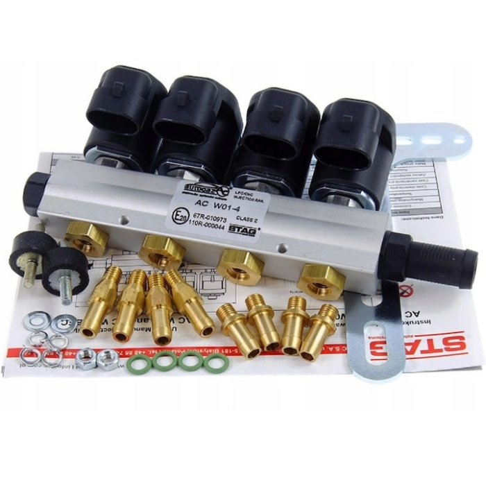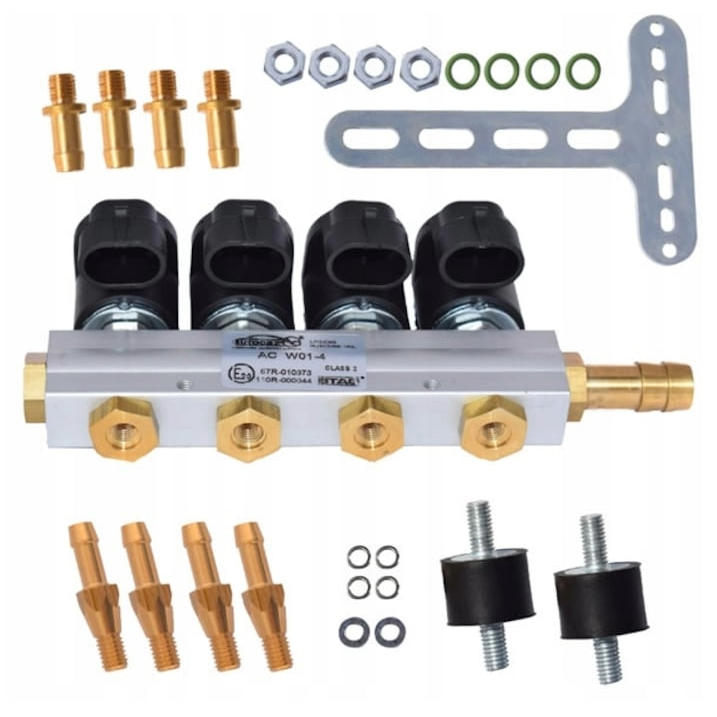 Contine duzele pentru galeria de admisie, duzele de calibrare, suporti de cauciuc pentru prindere si coliere de fixare.