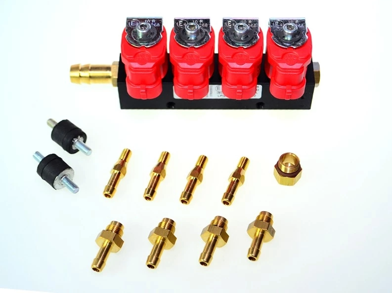 Rampă de injectoare GPL/CNG în fază gazoasă, cu duze de calibrare interschimbabile cu filet 1/8”G, bobine cu conector integrat de tip Amp/Delphi superseal 1,5 mm, protecție IP 54, corp de aluminiu anodizat de culoare neagră, cu distanța standard a cursei pistonului de Ø 4mm, intrare gaz de 12 mm cu posibilitate de montare pe ambele părți. Rampa asigură performanțe optime chiar și atunci când gazul este murdar, mentenanță simplă și dimensiuni compacte. Funcționare silențioasă. Compatibilă cu instalațiile GPL Tomasetto, AGR , Fratelli, Supergaz, Milano, AG Compact, KME, Fratelli etc.